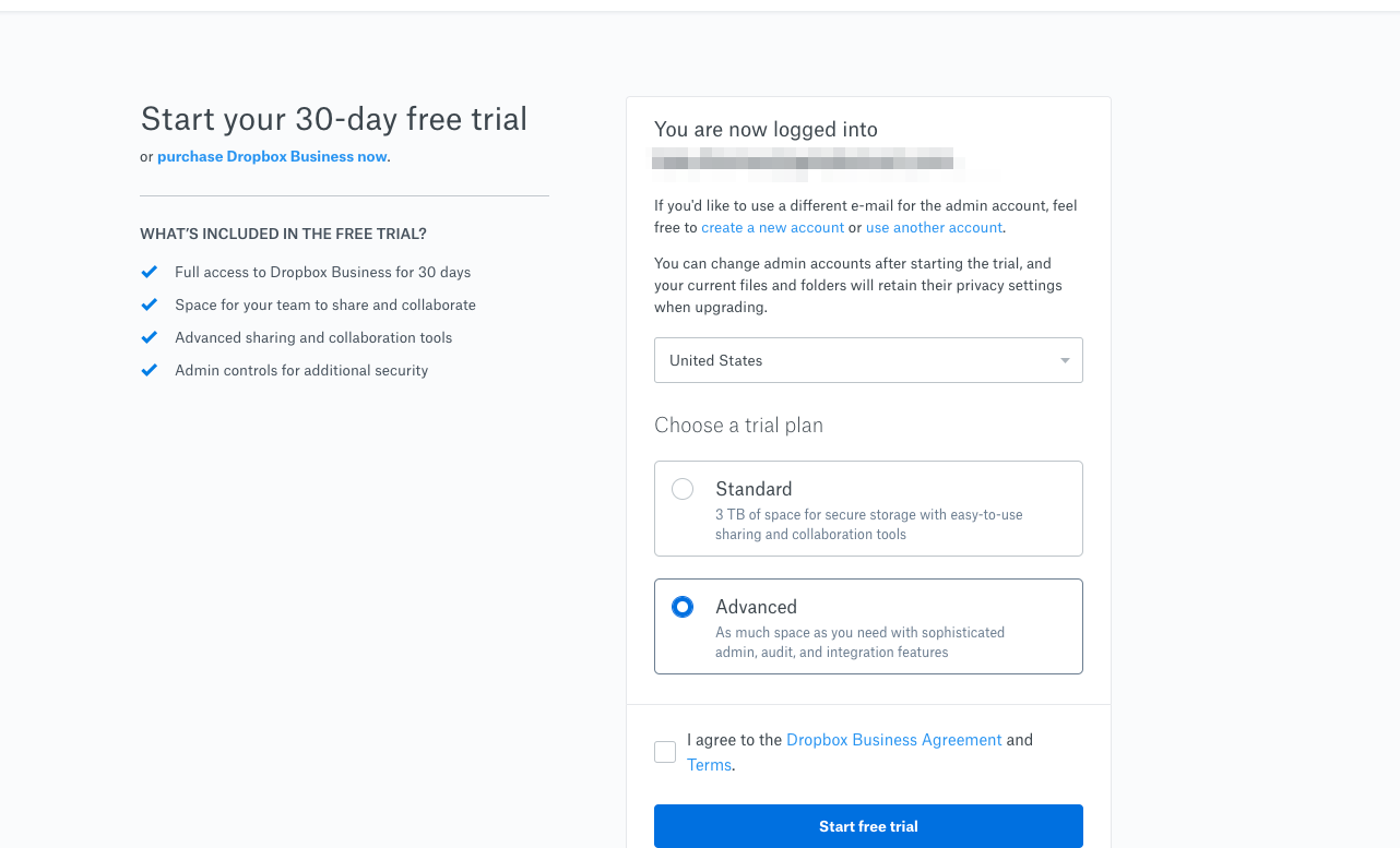 First up on the list - Dropbox still offers a free plan with no trial period for individuals, however, if you’d like to try the business plan, you need to start a 30-day trial.
